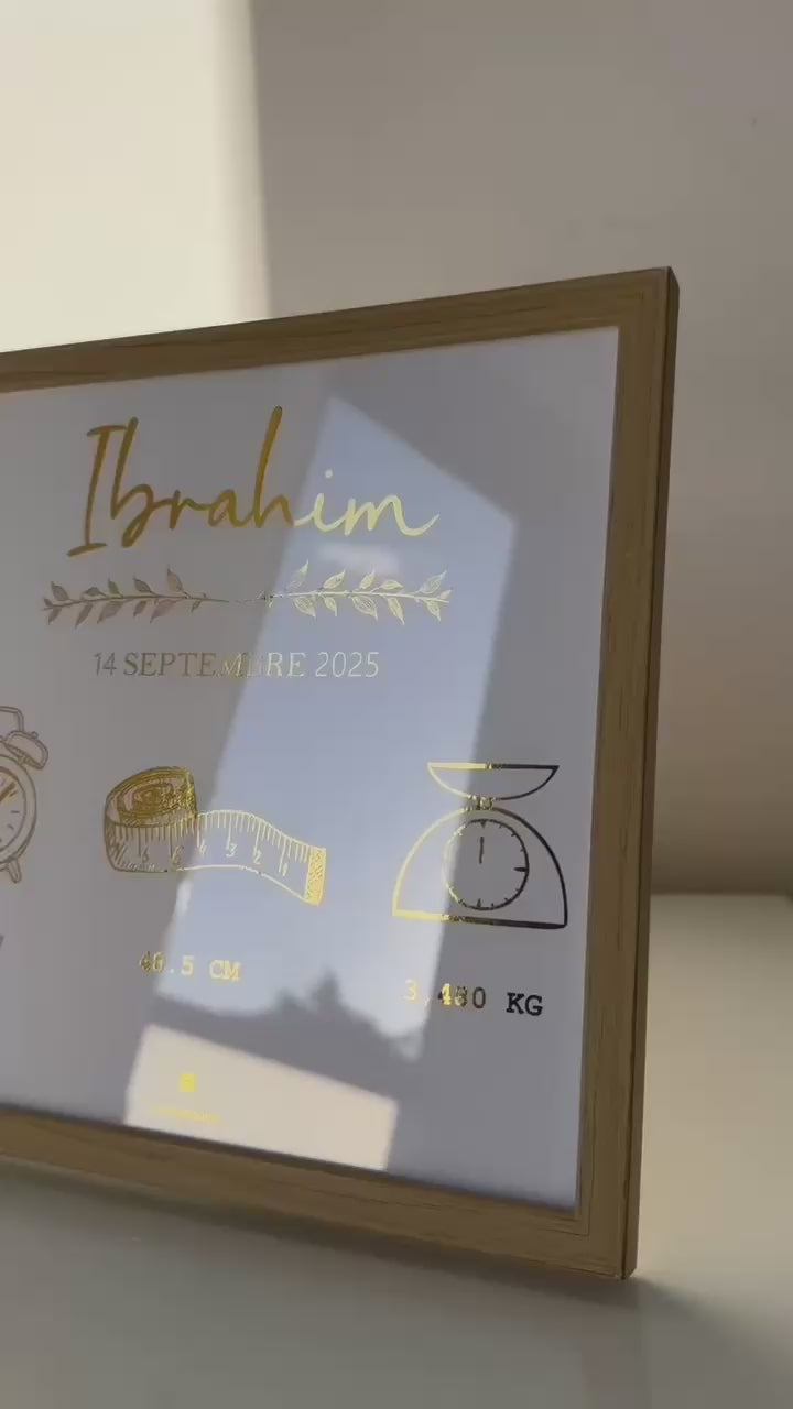 Célébrez l’arrivée de votre bébé avec élégance grâce à notre cadre de naissance personnalisé.